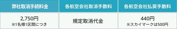 - 各航空会社払戻手数料 ― 航空会社規定の手数料になります。
